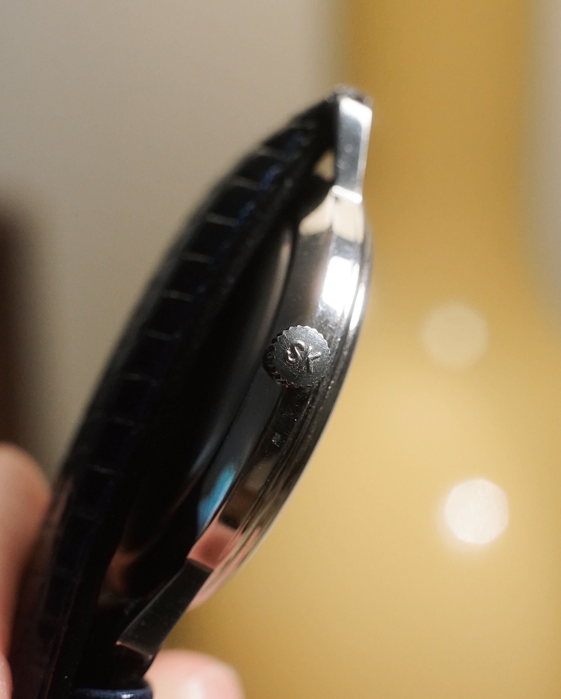 Currently running, and there are small scuffs on the crystal towards the 6 o'clock position seen in the last photo.