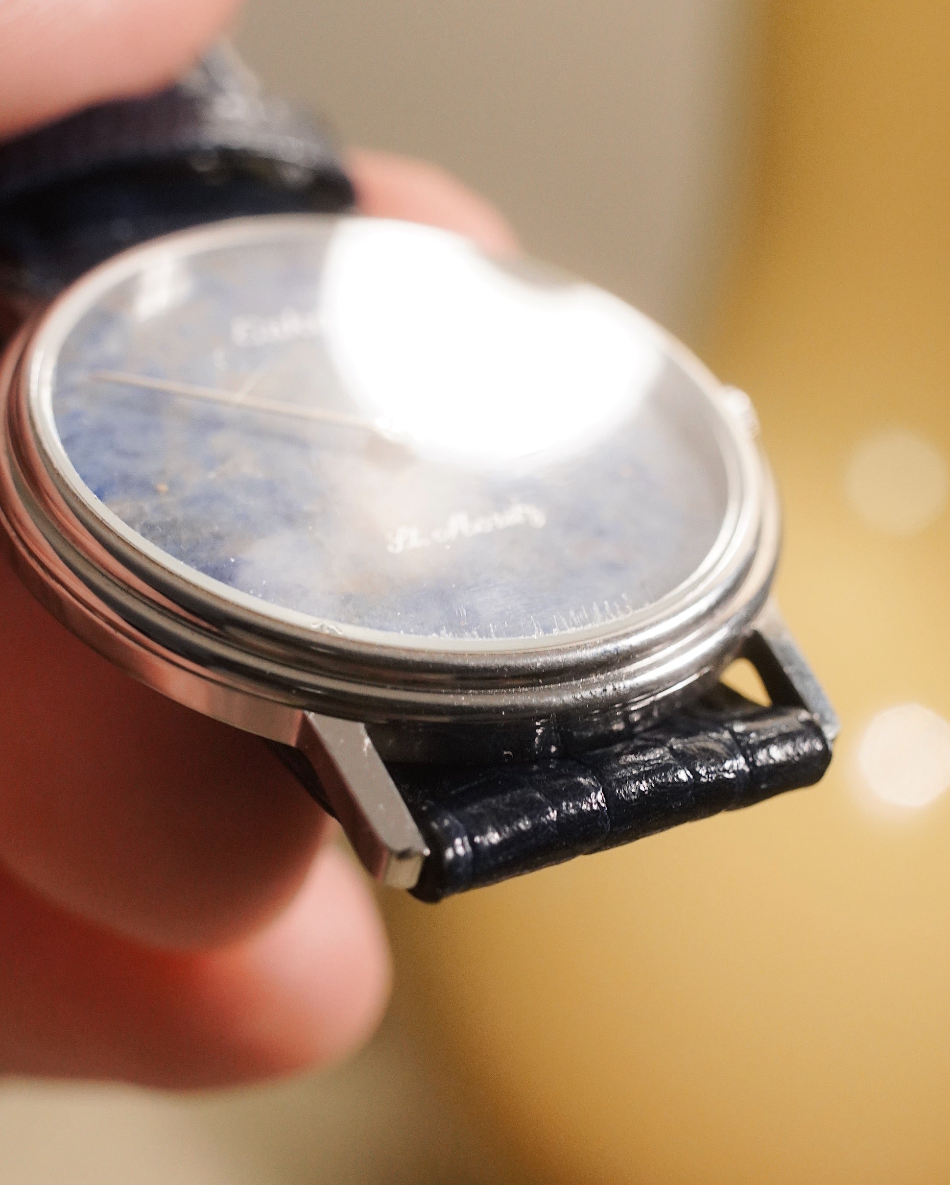 1980’s Eska St Moritz Lapis Lazuli Stone Dial In Steel